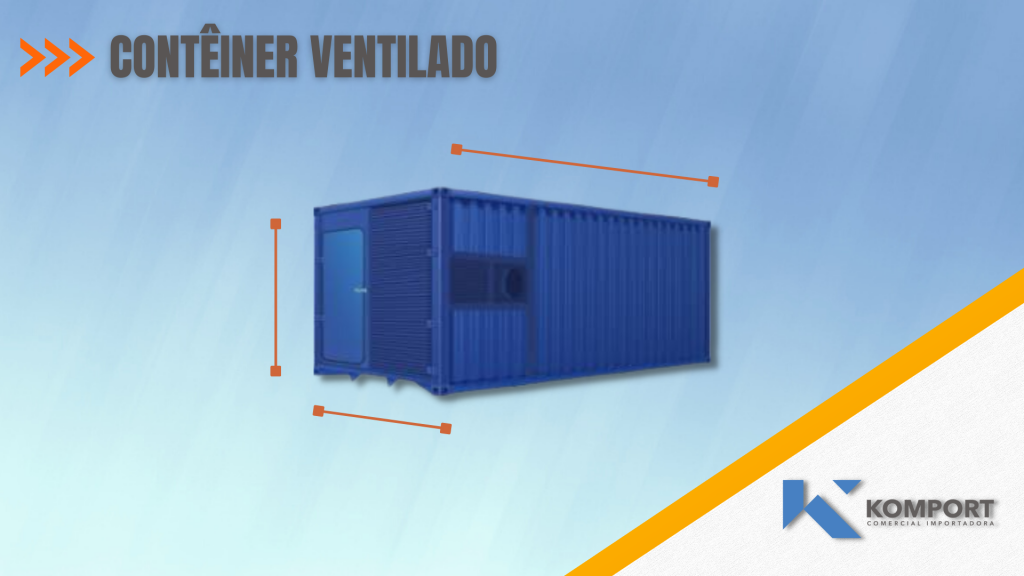 Contêiner Ventilado: parecido com o modelo Dry de 20 pés, esse contêiner serve para transportar cargas que precisem de ventilação, como cacau e cebola, por exemplo;